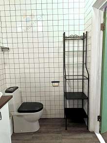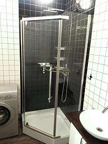 Ванная комната совмещенная, оформлена плиткой, установлена душевая кабина.