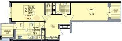 Общая площадь 69,47 кв.м. (с учетом двух лоджий), по выписке из ЕГРН 61,4 кв.м.