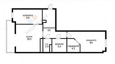 В квaртире огромная кухня-гоcтинaя площадью 28.5 метров.