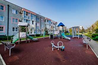 ✅ ЖК "Португалия" находится в тихом спокойном районе. На въезде в жилой комплекс установлены шлагбаумы. Во дворах много зелени. Множество детских площадок.