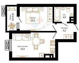 Площадь 37,7 м2. Функциональная планировка.